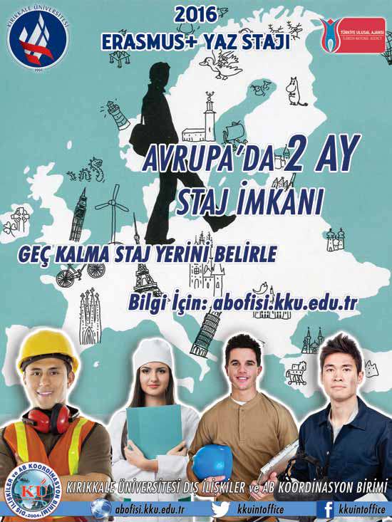 2016 Erasmus+ Yaz Stajı Avrupa'da 2 Ay Staj İmkanı